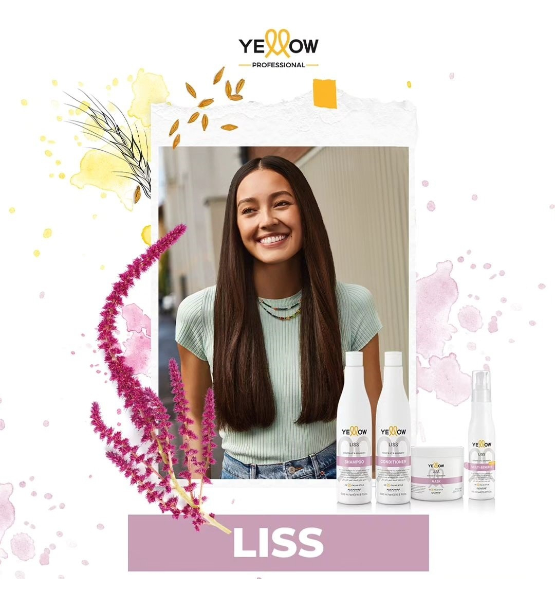 MODO DE USO: Después de Yellow Professional Smoothing Shampoo, con el cabello húmedo, aplicar en medios y puntas. Dejar actuar unos 5 minutos. Enjuagar. Continuar con 10-in-1 Serum.
