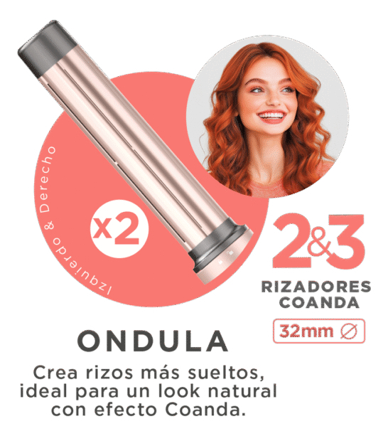Rizadores 32 mm (izquierdo y derecho) rizos más sueltos y naturales.