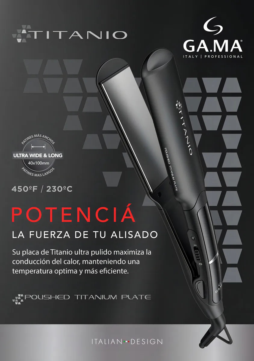 Planchita Pelo Gama X Wide Titanio Profesional Placas Anchas Color Negro
